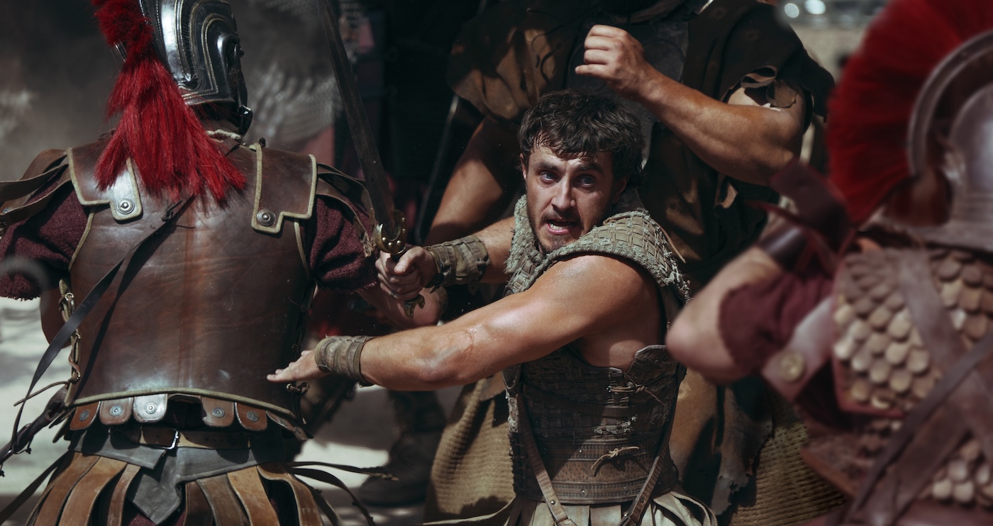 Scott tapped Napoleon (2023) scribe David Scarpa to carve out the sequel based on a story by Peter Craig (The Batman), which follows a now grownup Lucius (Paul Mescal) – who is revealed to be the son of Maximus and Lucilla (Connie Nielsen) – living with his wife Arishat (Yuval Gonenthe) in the Numidia empire (roughly northeast Algeria today). It’s not until invading Romans, led by General Acacius (Pedro Pascal), that he finds himself in a similar situation to his father – a widower fighting to stay alive for the amusement of the Colosseum mob.