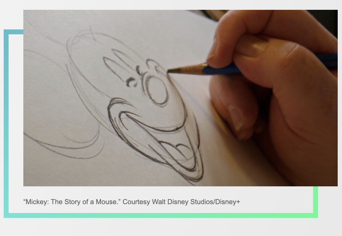 What makes this documentary so fascinating is it not only considers the evolution of Mickey through his nearly a hundred years in existence, but it also highlights traditional animators, both those working inside the studio now and those influential to Mickey’s progression from the early days of Disney. The documentary follows a new short being made, Mickey in a Minute, created with 2D animation by three traditional animators still working inside the studio. Mickey: The Story of a Mouse director Jeff Malmberg doesn’t shy away from considering the darker aspects of Mickey’s history and the character’s influence on counterculture, which gives the film more heft than you might expect from a studio that’s filming a documentary about its own legendary icon on its own streaming platform, Disney+.