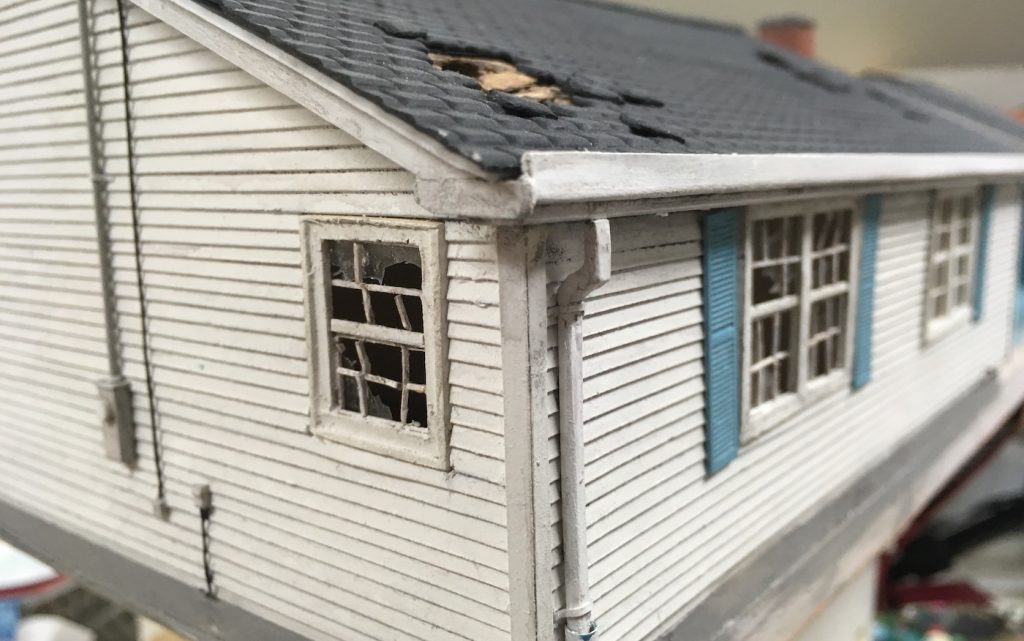 MoSoMos’ Bil Thompson served as cinematographer. Because of the pandemic, the crew was kept to a minimum. Doyle assembled the model, added the smaller pieces and decayed the house as needed. Hamburg was on hand to confer with Thompson. “Just to kind of talk lenses and make sure we had the moves right,” says Doyle. “I was really happy to have him there on set so he could frame things like the composition of the trees.”