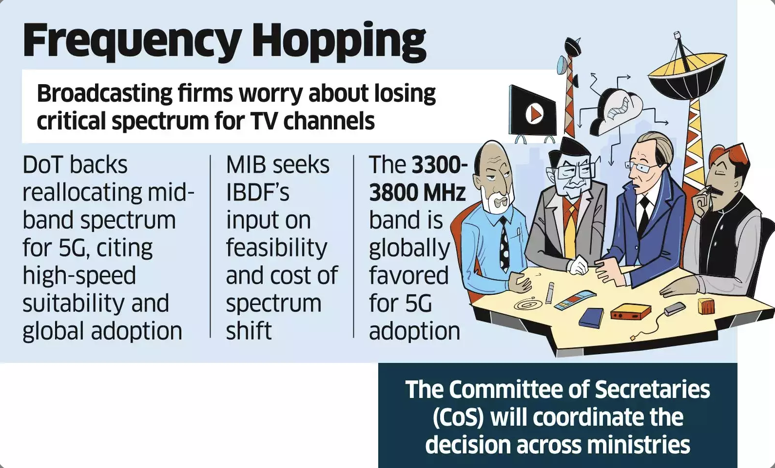 The ministry of information and broadcasting (MIB) is evaluating a proposal to recarve 100 MHz in the mid-band spectrum (3700-3800 MHz) and allocate it for 5G services, the people cited earlier said.