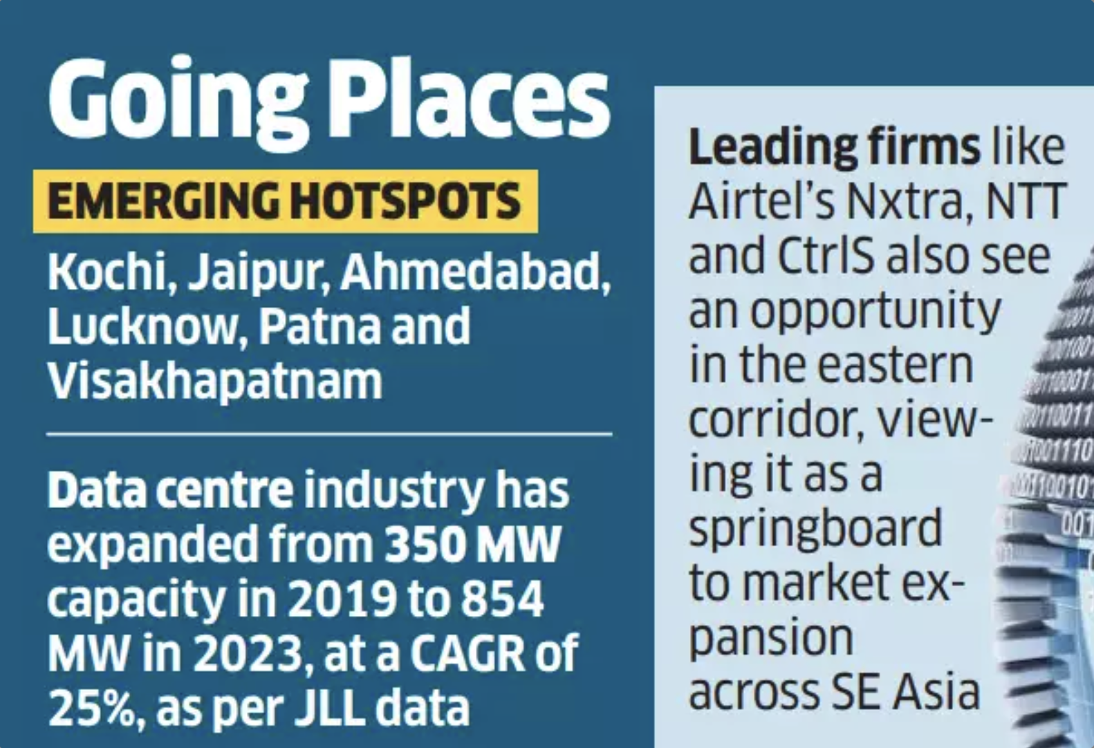 India’s fast-expanding data centre industry is evolving beyond traditional hubs like Mumbai and Chennai, and expanding to emerging hotspots such as Kochi, Jaipur, Ahmedabad, Lucknow, Patna and Visakhapatnam as companies look to serve a growing but distributed user base across the country, executives from top companies said.