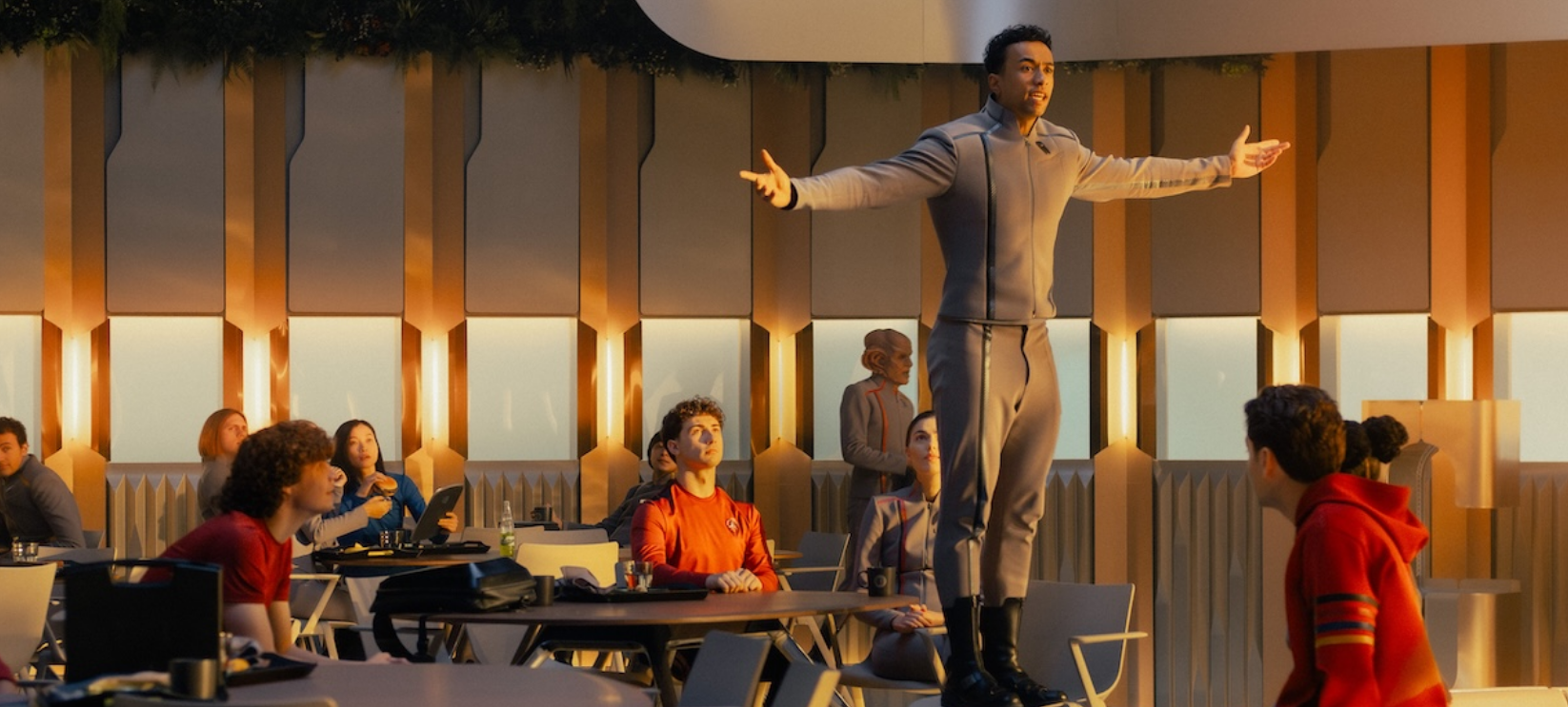 That was a big moment for Jay-Den, and I think that really heightens it—just the pressure, the lights, and being in the spotlight, which wasn’t his comfort zone. It forces him to go into his past, remember his brother and why he’s at Starfleet in the first place, and rekindle the courage within himself.